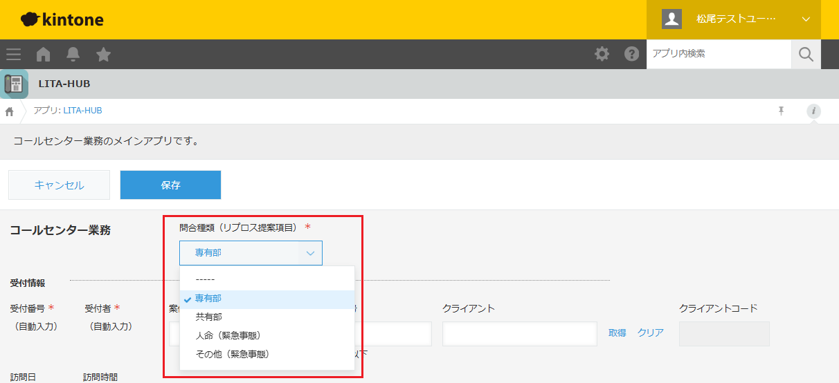 新規案件の問合種別は、デフォルトが専有部になっています。違う場合は変更してください。