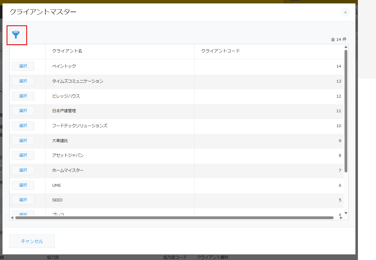 以下の赤い線で囲んだアイコンをクリックするとマスターから抽出する条件を設定できます。